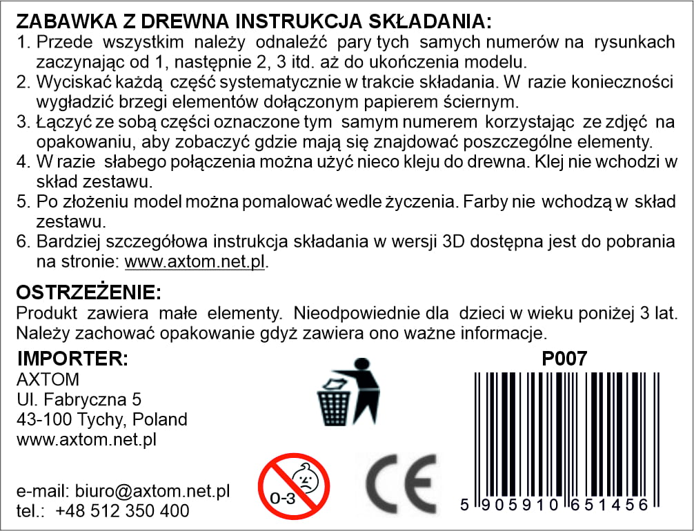 Puzzle wykonane z gotowych powycinanych płytek ze sklejki drewnianej o grubości ok. 3mm i wymiarach 230mm x 185mm. Model do samodzielnego składania.